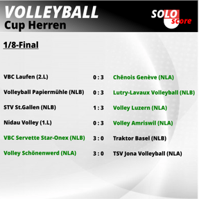 Schönenwerd, welche den angestrebten ersten Titelgewinn ärgerlich verpassten. Heute nun siegte Schönenwerd gegen Jona diskussionslos mit 3:0 und qualifizierte sich so für die Cup-Viertelfinals,