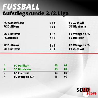 Mit jeweils deutlichen Heimsiegen sichern sich der FC Dulliken und der SC Blustavia den Aufstieg in die 2.Liga.